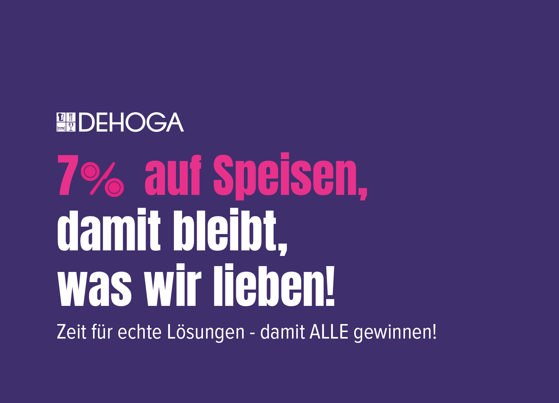 Der DEHOGA bleibt zuversichtlich - der Einsatz zeigt Wirkung. Der Gesetzgebungsprozess zur Umsetzung der 7 % ab Januar 2026 ist in vollem Gange. Bund und Länder müssen nun gemeinsam Lösungen finden, die Stabilität schaffen – für alle Beteiligten, vor allem aber für die Betriebe, Beschäftigten und Gäste. Vertrauen, Verlässlichkeit und Planungssicherheit – das ist es, was die Branche jetzt braucht.